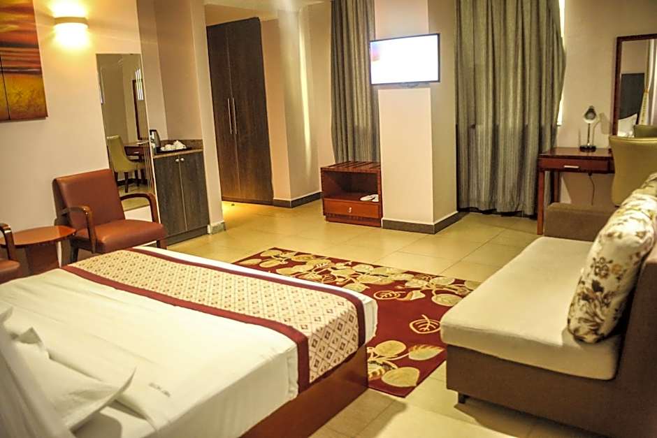 This air-conditioned room with city views features a flat-screen TV with satellite channels, a sofa bed ,a sofa, a seating area, a mosquito net and an outdoor dining area.